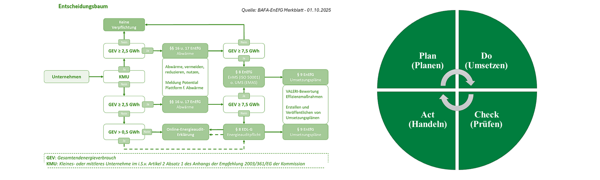 Seit November 2023 unterliegen alle Unternehmen den Anforderungen des Energieeffizienzgesetzes (EnEfG). Dies betrifft auch KMU, deren durchschnittlicher Gesamtenergieverbrauch in den letzten drei Jahren über 7,5 Mio. kWh lag.